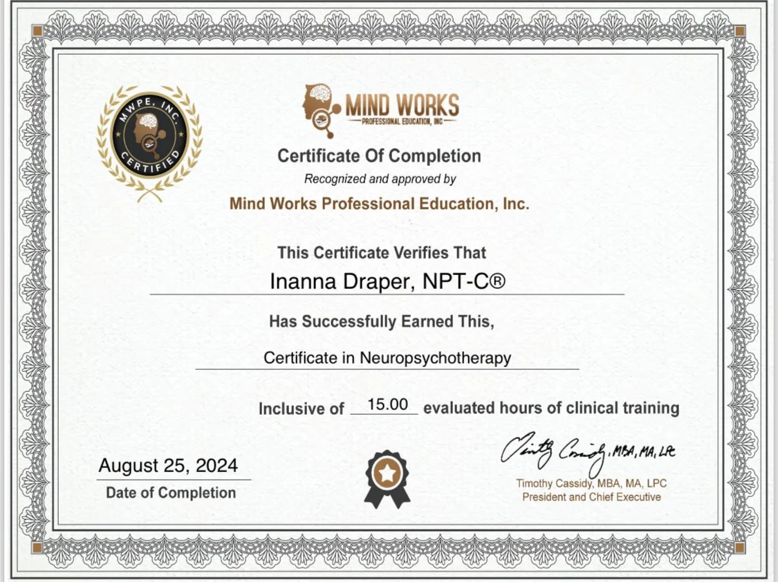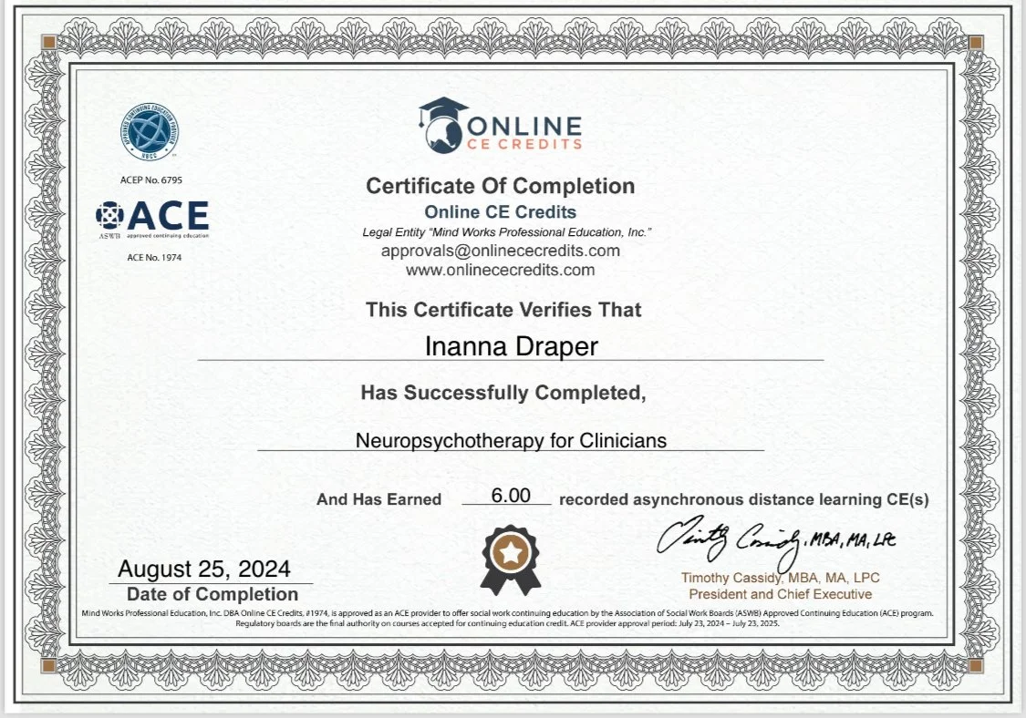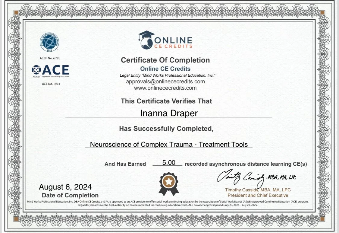 Inanna is not a mental health care provider. She offers spiritual based counseling and coaching.