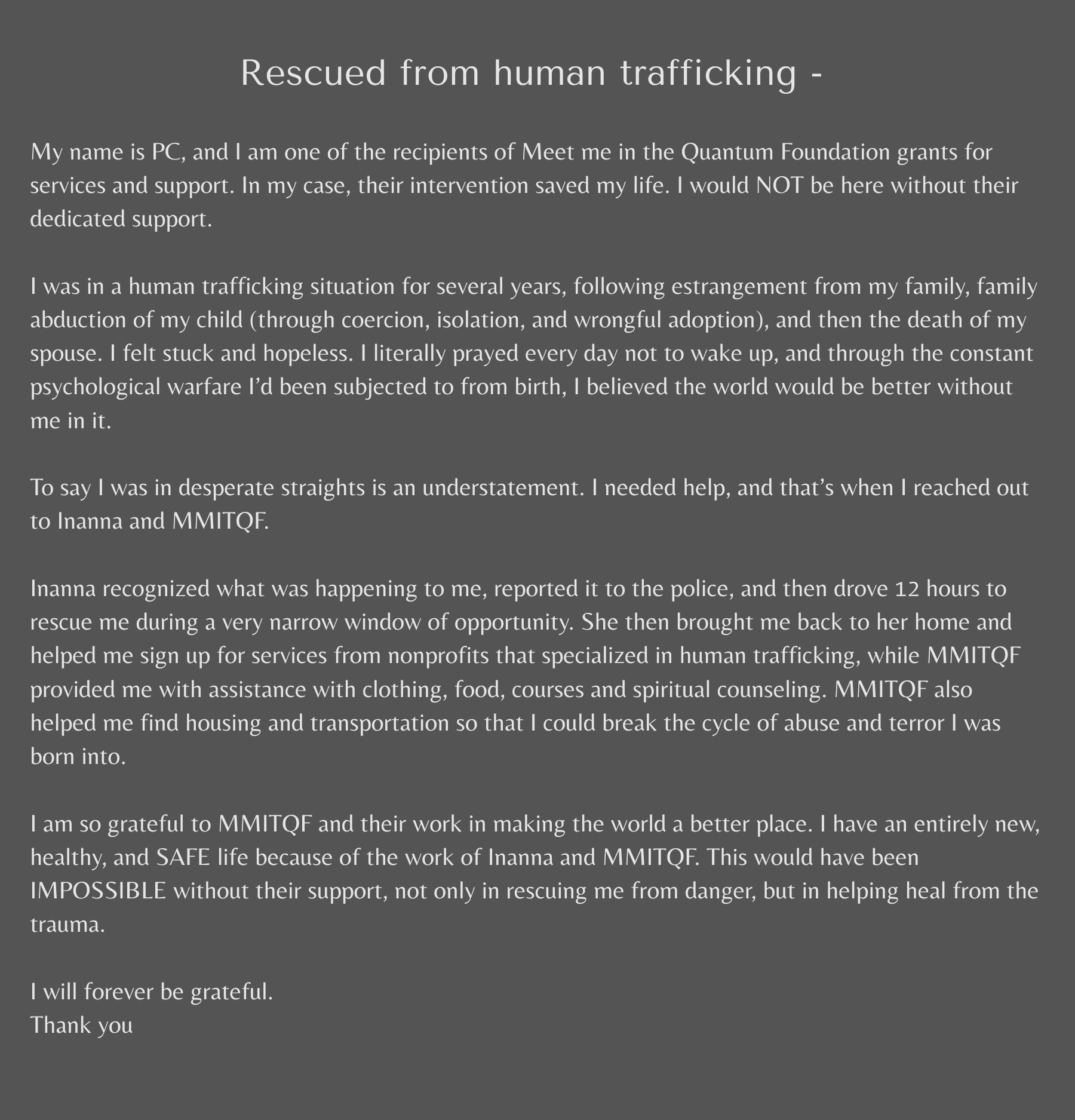 From providing food and utility assistance to even rescuing someone from human trafficking, MMITQF is actively trying to make the world a better place through love in action.